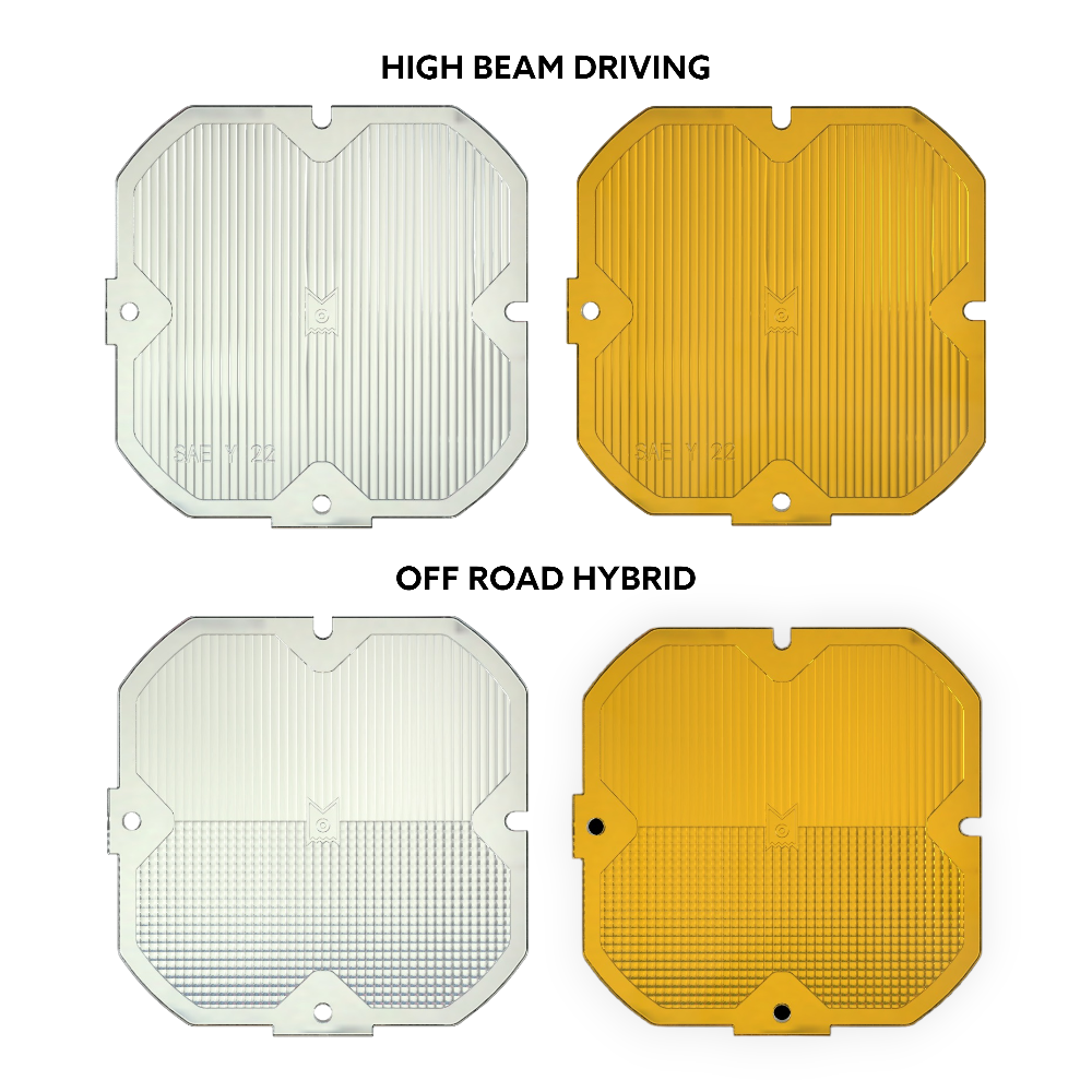 - Multiple beam patterns available, including SAE driving, SAE fog, and hybrid off-road in both white and amber colors