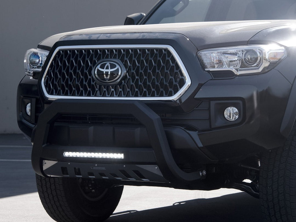 The Armordillo AR Series Bull Bar combines robust front-end protection with a sleek design, making it a practical addition to your vehicle. Crafted from high-quality steel and finished in a matte black powder coat, this bull bar not only enhances the aesthetic appeal of your vehicle but also provides essential durability and strength. The integrated LED light bar and aluminum skid plate further enhance its functionality, ensuring you are well-equipped for any driving conditions.