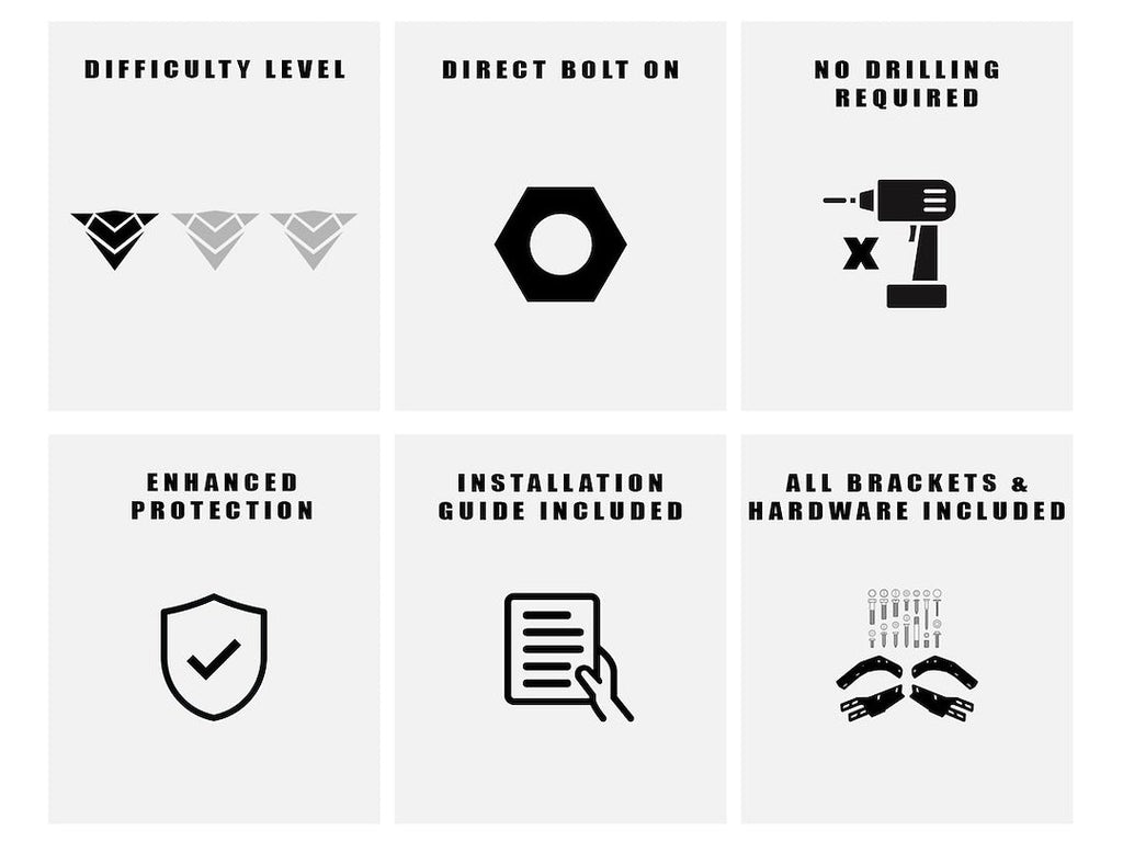 The Armordillo Rayden Bull Bar offers robust front-end protection against minor collisions, debris, and wildlife. Constructed using advanced Forge Pressed technology, this bull bar is designed to withstand various road conditions while enhancing the aesthetic appeal of your vehicle. Its multifunctional design includes auxiliary light mounting options, allowing for improved visibility during nighttime driving. The three-stage powder coating ensures long-lasting durability and resistance to rust and corrosion.