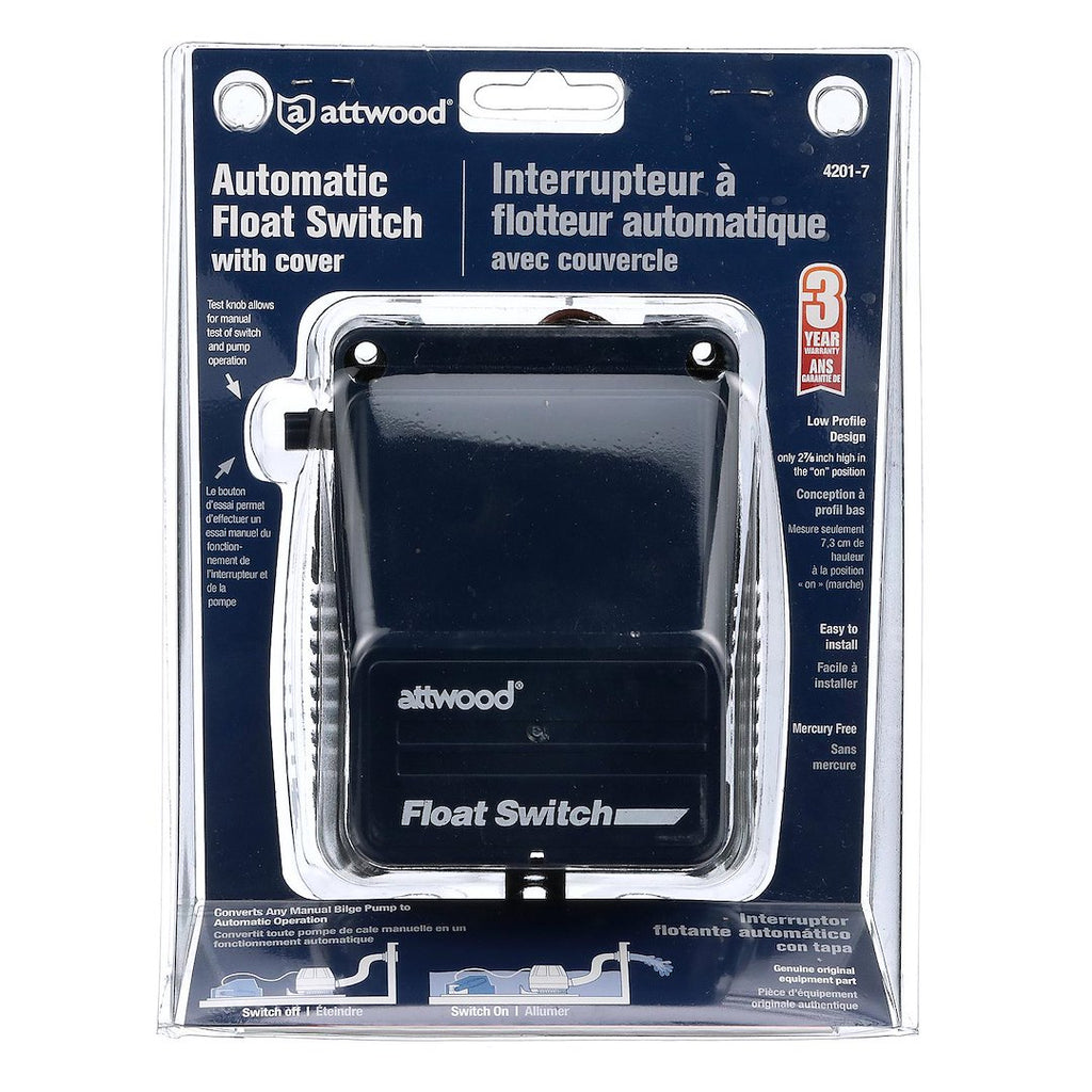 The Attwood Marine Bilge Pump Switch is designed to convert bilge pumps into fully automatic systems, ensuring efficient water management in marine environments. This float switch operates on both 12 Volt DC and 24 Volt DC systems, making it versatile for various applications.
