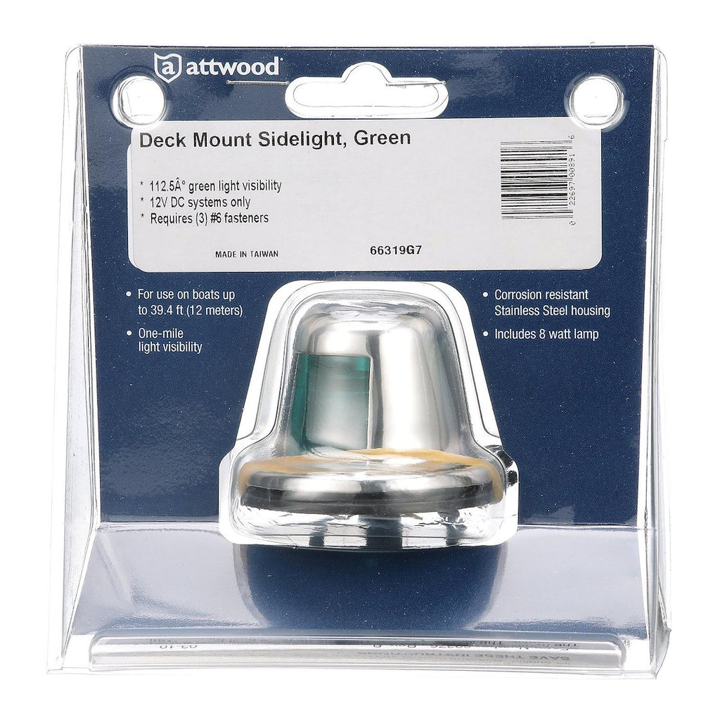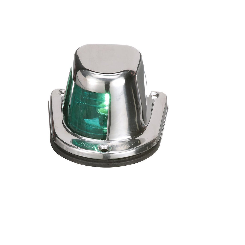 The Attwood Marine Navigation Light 66000 Series is designed to provide reliable illumination for boats up to 39.4 feet in length. This combination side light features a green polycarbonate lens and a durable stainless steel housing, ensuring long-lasting performance in marine environments. With a visibility range of 1 mile and a 112.5-degree light angle, this light enhances safety during nighttime navigation.