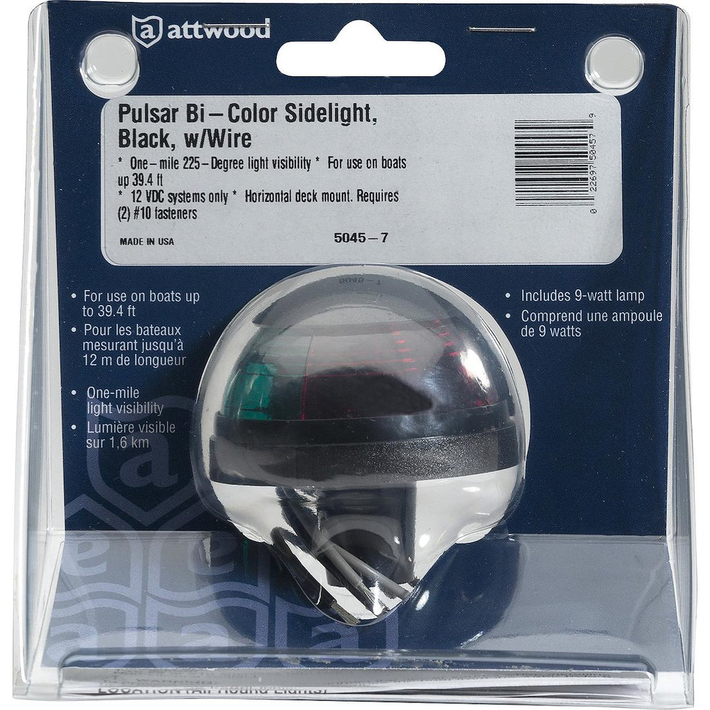 The Attwood Marine Navigation Light from the Pulsar 5040 Series is designed to provide reliable illumination for boats up to 39.4 feet in length. This combination side light features a bi-color design with red and green lenses, ensuring optimal visibility from a distance of up to one mile. Constructed with durable polycarbonate materials, this light is built to withstand harsh marine environments.