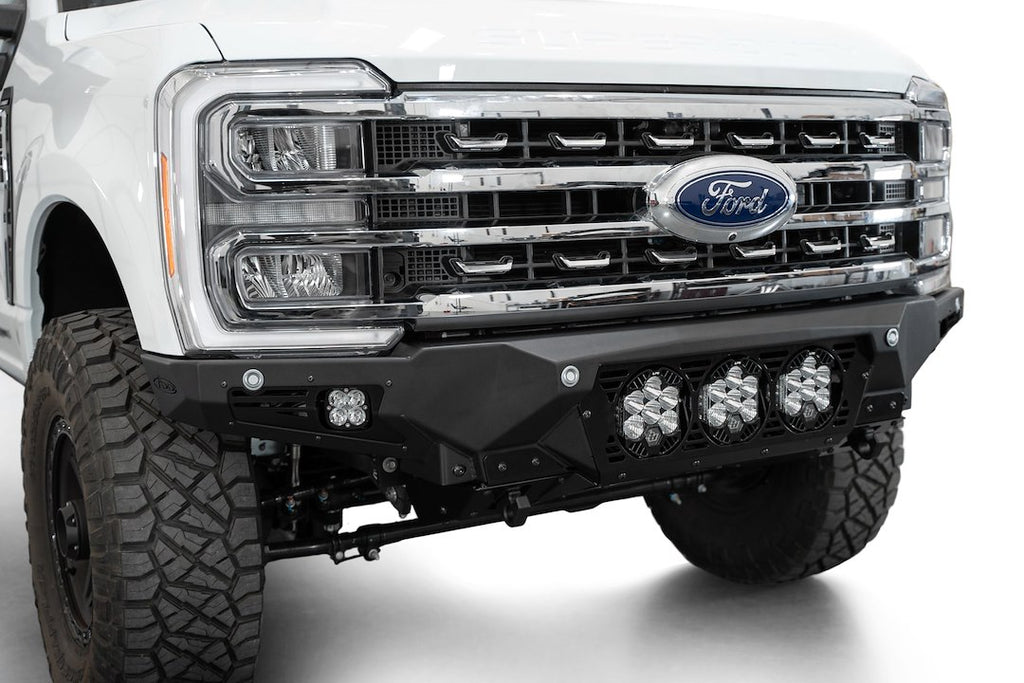 The Bomber Ford Super Duty Front Bumper is designed to provide robust protection while enhancing the aggressive appearance of your truck. This one-piece bumper features multiple light mounting options, ensuring optimal visibility during both on-road and off-road adventures.