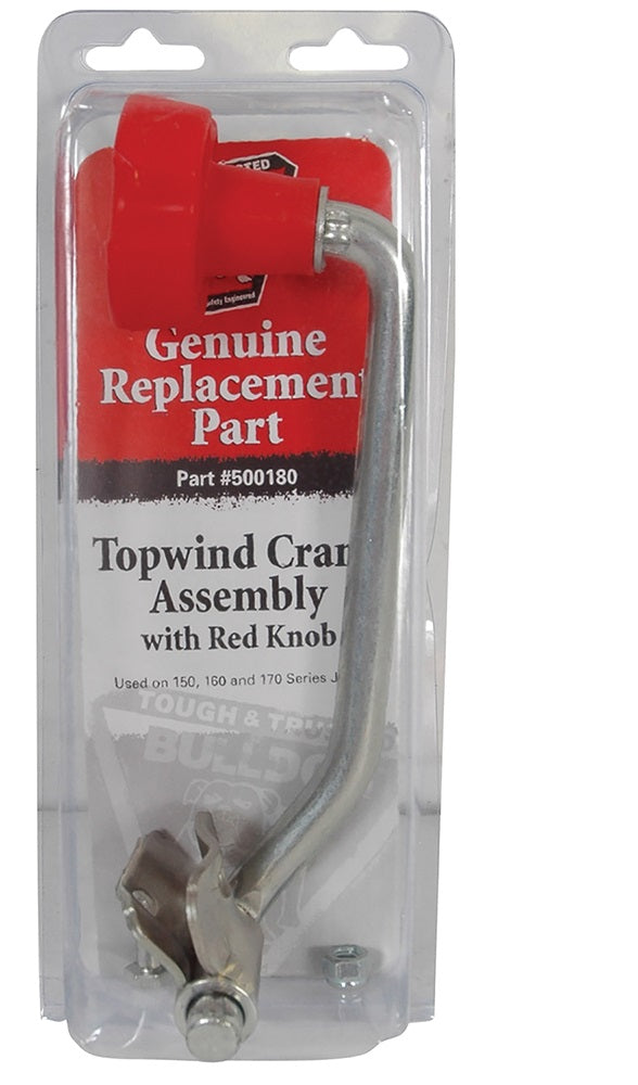 The Bulldog Trailer Tongue Jack Crank is a high-quality replacement component designed specifically for Bulldog 150, 160, and 170 Series topwind jacks with a capacity ranging from 2000 to 5000 pounds. This durable crank assembly ensures optimal performance and safety for your trailer, making it an essential part of your towing setup.