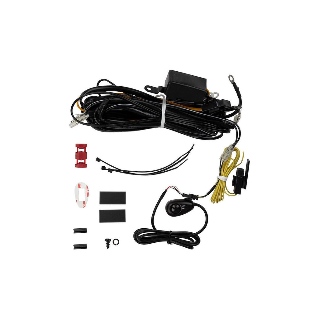 This driving fog light wiring harness is designed for vehicles without original equipment fog lights. It includes a mouse style switch and all necessary components to effectively operate ARB fog lamps, specifically the ARB 6821201 model.
