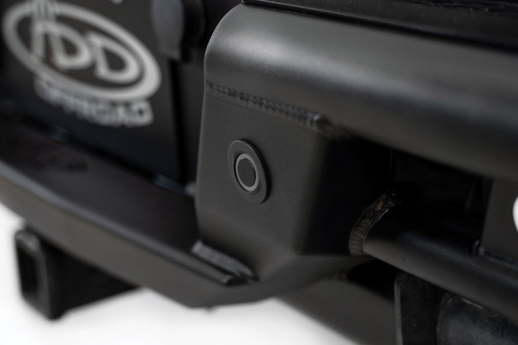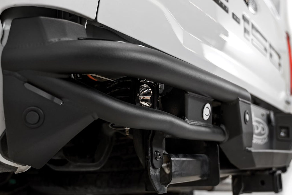 The Ford F-150 PRO Bolt-On Rear Bumper combines a sleek prerunner design with robust protection, making it an essential addition for off-road enthusiasts. Crafted from durable .120 inch wall steel tubing and finished with a hammer black powder coat, this bumper is engineered for long-lasting performance. The CNC cut aluminum top plate, coated in satin black powder, adds a touch of elegance whether on or off the road. This bumper retains all OEM features, ensuring safety and functionality without compromise.
