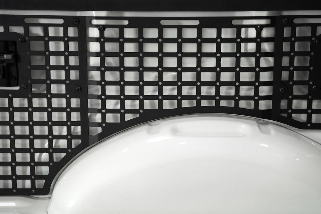 The Molle Cargo Panel for 2021+ Ford F-150 and 3rd Gen Raptor is designed to significantly improve the cargo storage capabilities of your truck bed. Constructed from high-quality American steel and finished with a durable hammer black powder coat, these panels provide a robust solution for securing your gear while maintaining a clear bed floor for larger items.