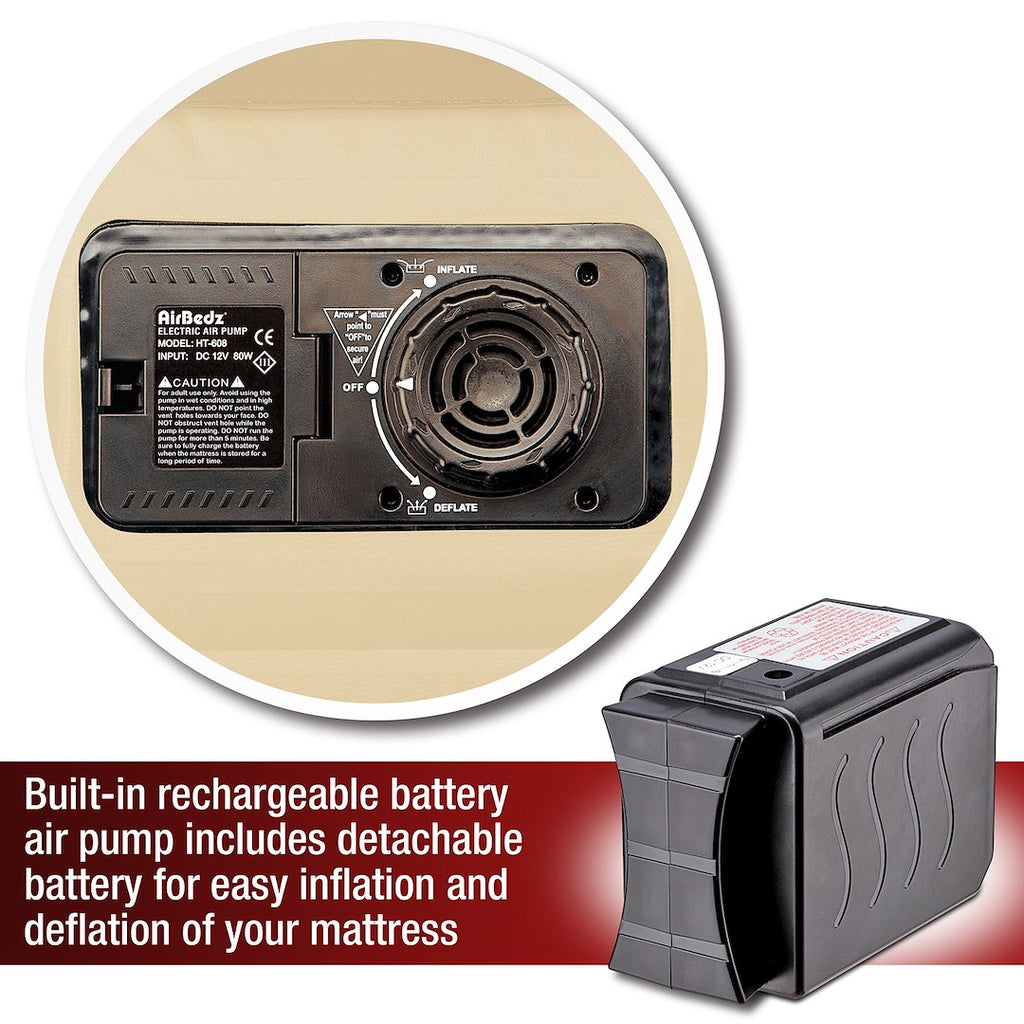 - Quick and easy inflation with built-in rechargeable battery-powered air pump