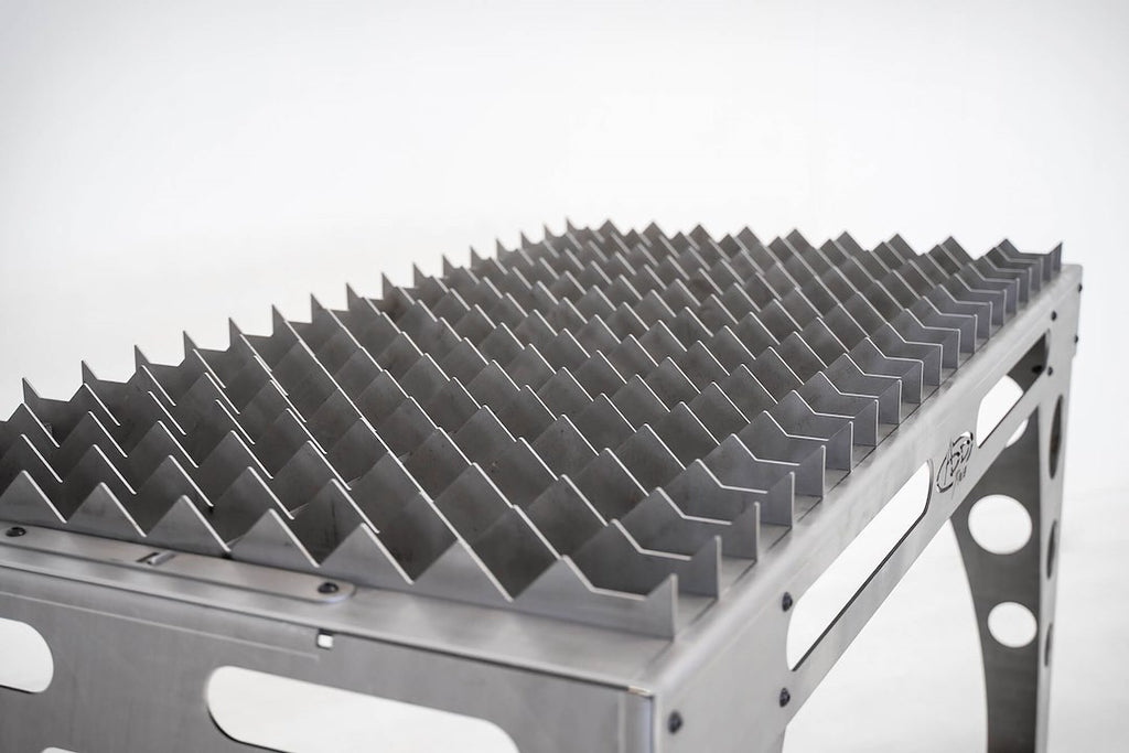 - Enables cutting of sheet metal without the need to hang it off the edge