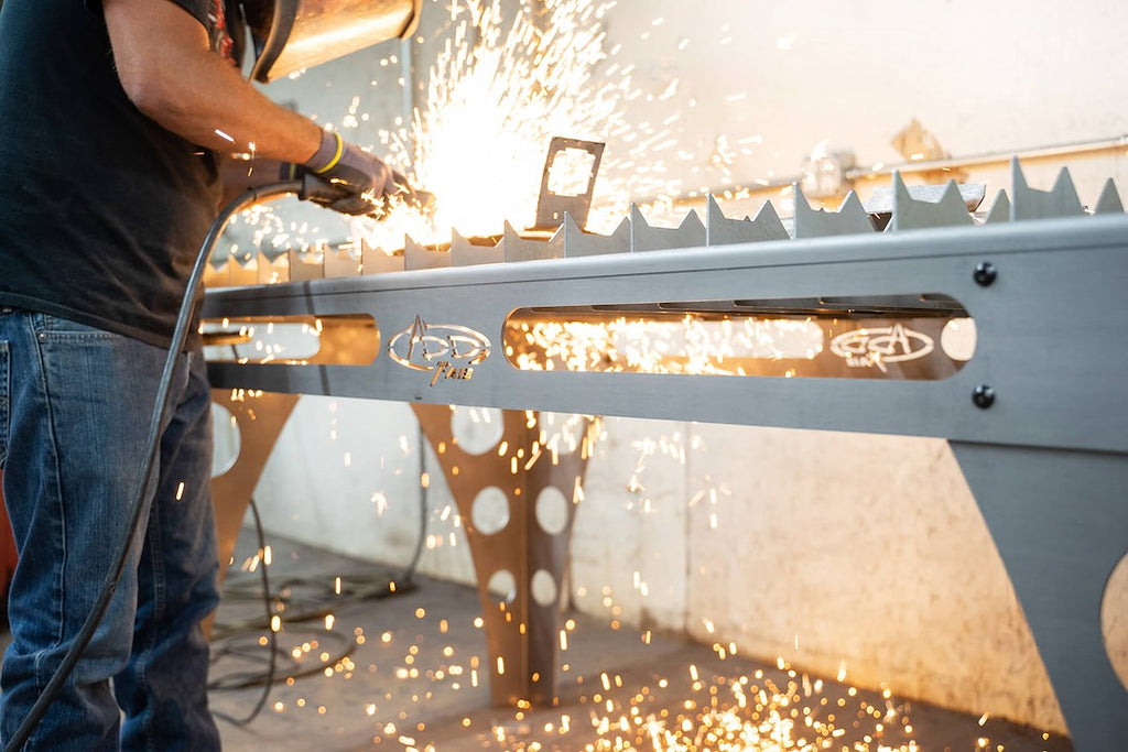 This sheet metal cutting work bench is designed for both professional and personal use, providing a robust platform for various fabrication tasks. With a spacious working area and sturdy construction, it allows for efficient cutting and handling of metal sheets without the need for additional support.