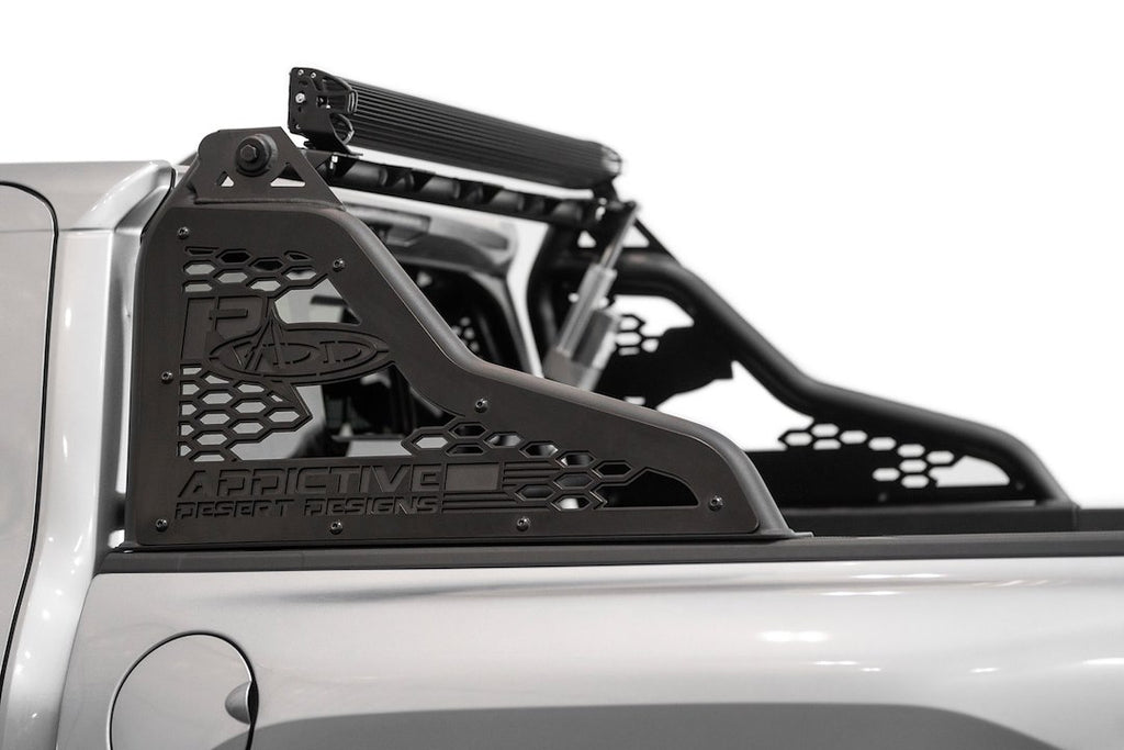 The Truck Bed Bar Race Series Chase Rack is engineered to elevate the aesthetic of your truck while offering enhanced lighting and gear mounting options. This robust rack features a sleek design that integrates seamlessly with your vehicle's factory look, providing both style and utility.