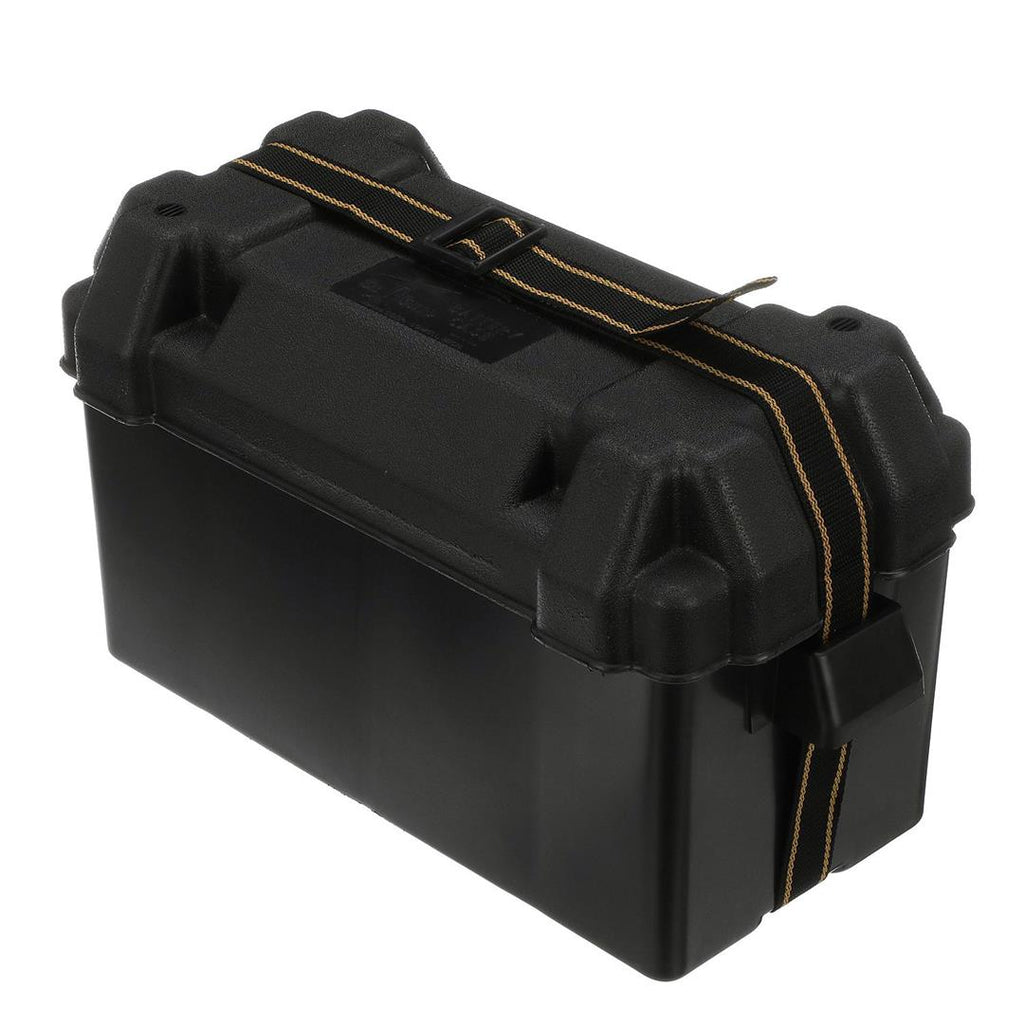 This Attwood Marine Battery Box is designed for secure storage of Group 29 and 31 batteries. Constructed from high-quality polypropylene, it offers total acid resistance and meets stringent safety standards, ensuring reliable performance in various conditions.