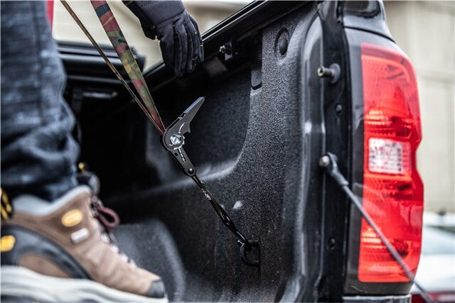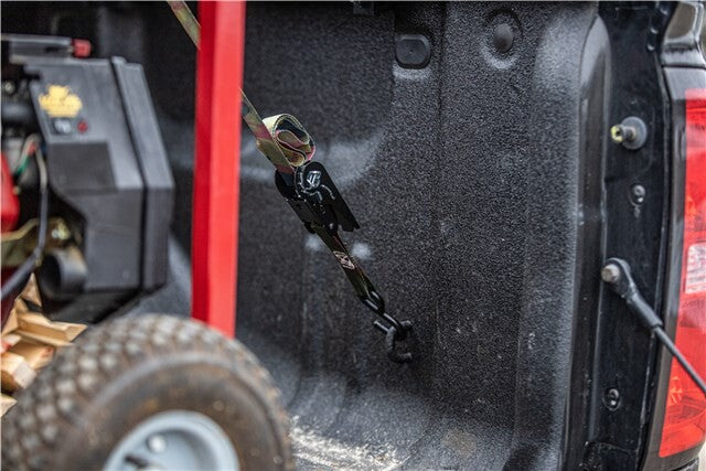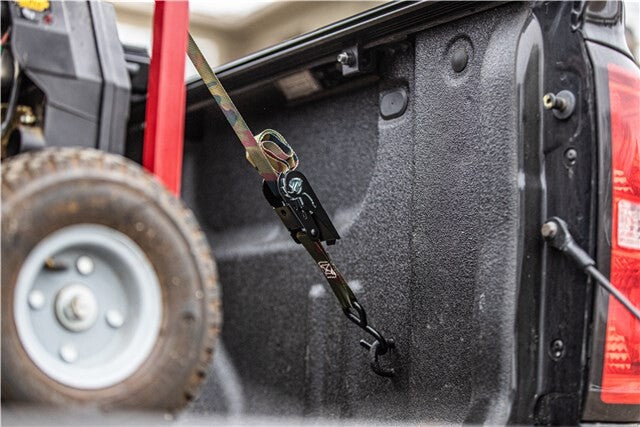 This 8-foot tie down strap is designed for secure transportation and storage of various outdoor equipment. With a load capacity of 400 pounds and a break strength of 1200 pounds, it is engineered to withstand demanding applications while ensuring safety and reliability.